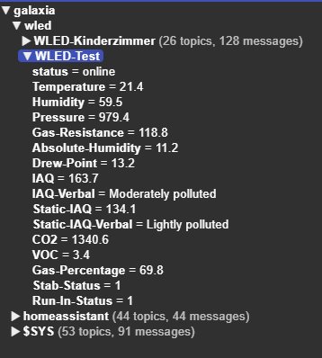 The gas sensor of the BME68X must be calibrated. This differs from the BME280, which does not require any calibration. There is a range of additional information for this, which the driver also provides. These values can be found in HomeAssistant under Diagnostics.