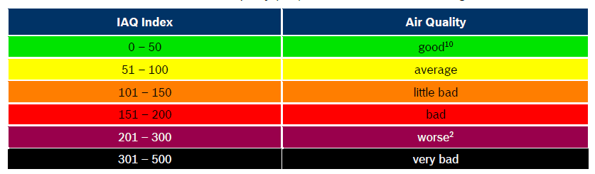 IAQ value between 0 and 500